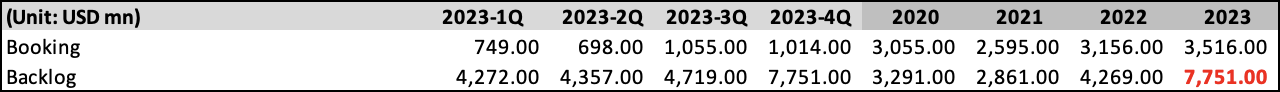 2023년 7대 분량의 Columbia-class propulsion 수주가 한꺼번에 들어오면서 backlog에 $3 bn이 추가로 잡히게 된 점이 눈여겨 볼 부분이다.