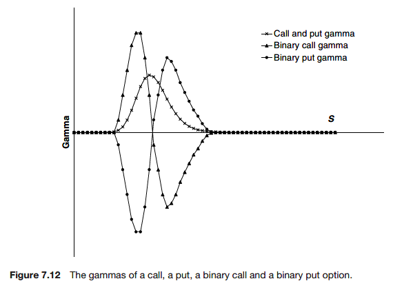 Since gamma is the sensitivity of the delta to the underlying it is a measure of by how much or how often a position must be rehedged in order to maintain a delta-neutral position. Although the delta also varies with the time this effect is dominated by the Brownian nature of the movement in the underlying.