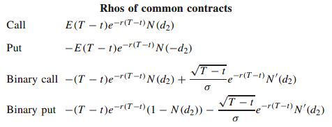 Rho is the sensitivity of the option value to the interest rate used in the Black-Scholes formulae: